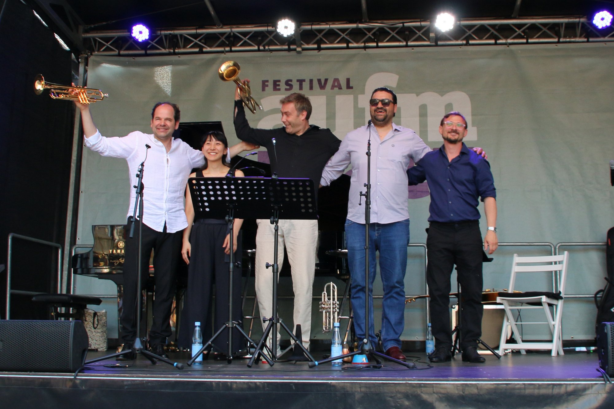 „Unterwegs“ in Rinteln, Gronau, Osterode und Duderstadt war das Festival aufm Platz am zweiten Wochenende mit dem Schauspieler Florian Lukas, den Trompetern Jeroen Berwaerts und Benny Brown, dem Jazz-Gitarristen Giovanni Weiß und der Pianistin Akiko Nikami. Klassik und Jazz der 1950er Jahre verschmolzen mit Auszügen aus dem Roman „On the road“ von Jack Kerouac. „Begeisterung aufm Platz“ titelte die Leine-Deister-Zeitung über das Programm.