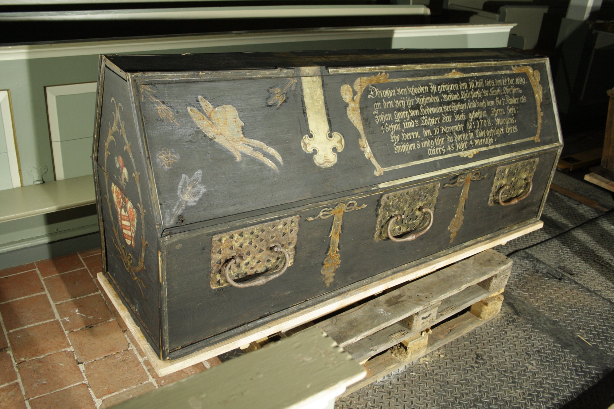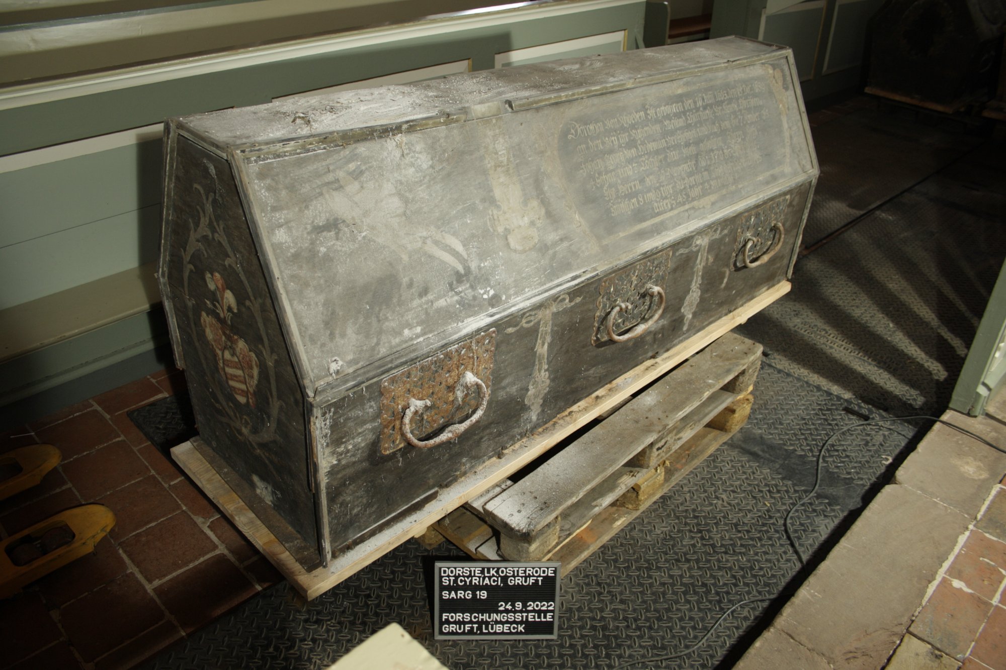 Die Familiengrablege unter dem Kirchturm wurde 1704 eingerichtet und bis 1858 wurden dort insgesamt 21 Erwachsene und 4 Kinder beigesetzt. Nach dem Verarmen der Familie Mitte des 19. Jahrhunderts blieben die Gruft und die darin befindlichen Särge lange unbeachtet. Erst im Jahr 2015 wurde die renommierte „Forschungsstelle Gruft“ aus Lübeck auf die Grablege aufmerksam und wertete sie als wichtiges Zeugnis der historischen Begräbniskultur, für dessen Erhalt aber umfangreiche Sicherungsmaßnahmen notwendig seien. Daraufhin wurde die Kirchengemeinde aktiv und ließ 2022 die Gruft sanieren, die Särge aufwendig restaurieren und alle Befunde wissenschaftlich dokumentieren. Die VGH Stiftung unterstützte dieses Projekts aufgrund seiner Bedeutung für die regionale Kulturgeschichte.