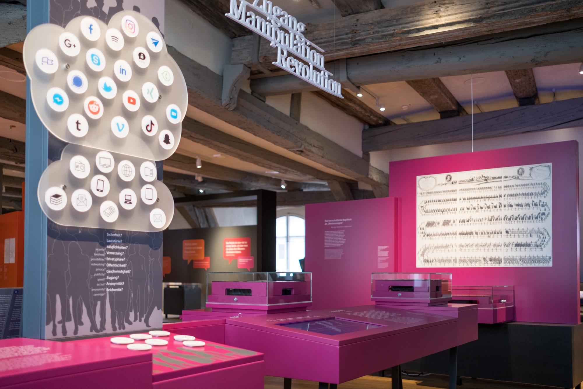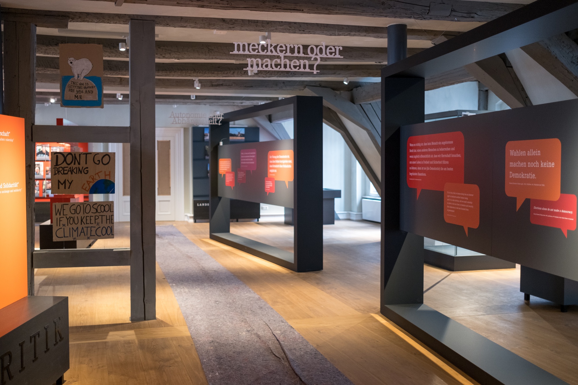 Anhand historischer Beispiele und mit Bezug zum aktuellen Zeitgeschehen werden wesentliche Elemente und verschiedenartige Strukturen politischer Teilhabe vom Mittelalter bis zur Gegenwart thematisiert. Interaktive Module sollen die Verknüpfung von Geschichte und Gegenwart für die Besucherinnen und Besucher erlebbar machen.