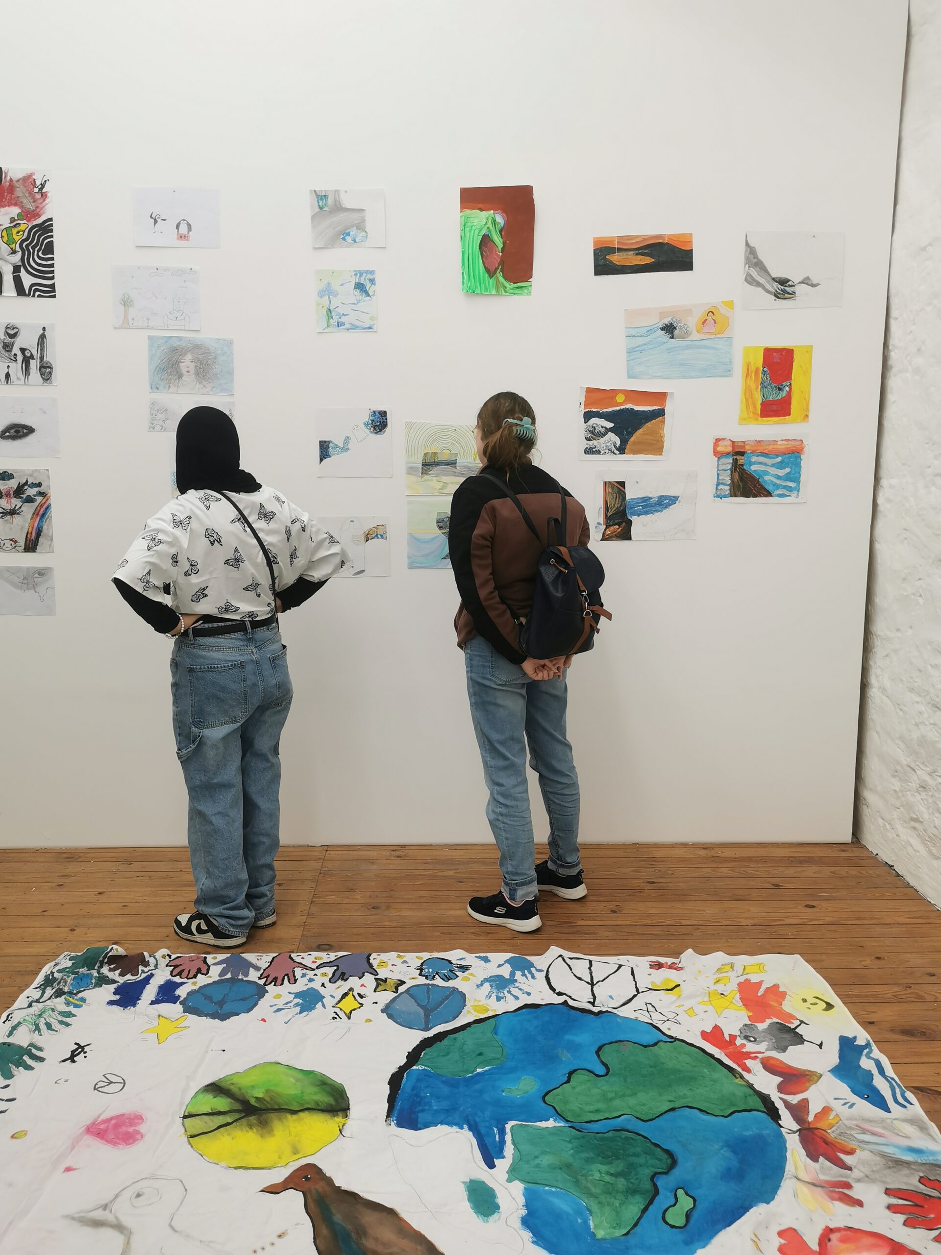 Ergänzend haben die Kunstvermittler*innen unter der Leitung von Ulrike Brantl wöchentlich stattfindende „Kunstateliers“ für Schüler*innen der Realschule Himmelsthür und der Robert-Bosch-Gesamtschule in Hildesheim angeboten. Nach dem Besuch der aktuellen Ausstellungen des Kunstvereins haben sich die Jugendlichen zum Beispiel mit Themen wie Frieden, Gerechtigkeit und Zusammenhalt beschäftigt und ihre Überlegungen abschließend in einem 4 x 5 m großen Gemeinschaftsbild festgehalten. Die Ergebnisse der beiden Kunst-AGs wurden in einer gemeinsamen Werkschau in den Räumen des Kunstvereins präsentiert.