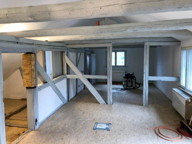 Während der Instandsetzung des denkmalgeschützten Fachwerkhauses lief nicht immer alles rund: Ein umfangreicher Schädlingsbefall in den Balken hielt den Zeitplan ebenso auf wie der längere krankheitsbedingte Ausfall eines Handwerkers. Es folgten Probleme mit der Statik, und dann verzögerte auch noch der Corona-Shutdown die Arbeiten. Nun, nach rund 16 Monaten Bauzeit, sind auch die letzten handwerklichen Arbeiten erledigt und das Gebäude ist eingeweiht.