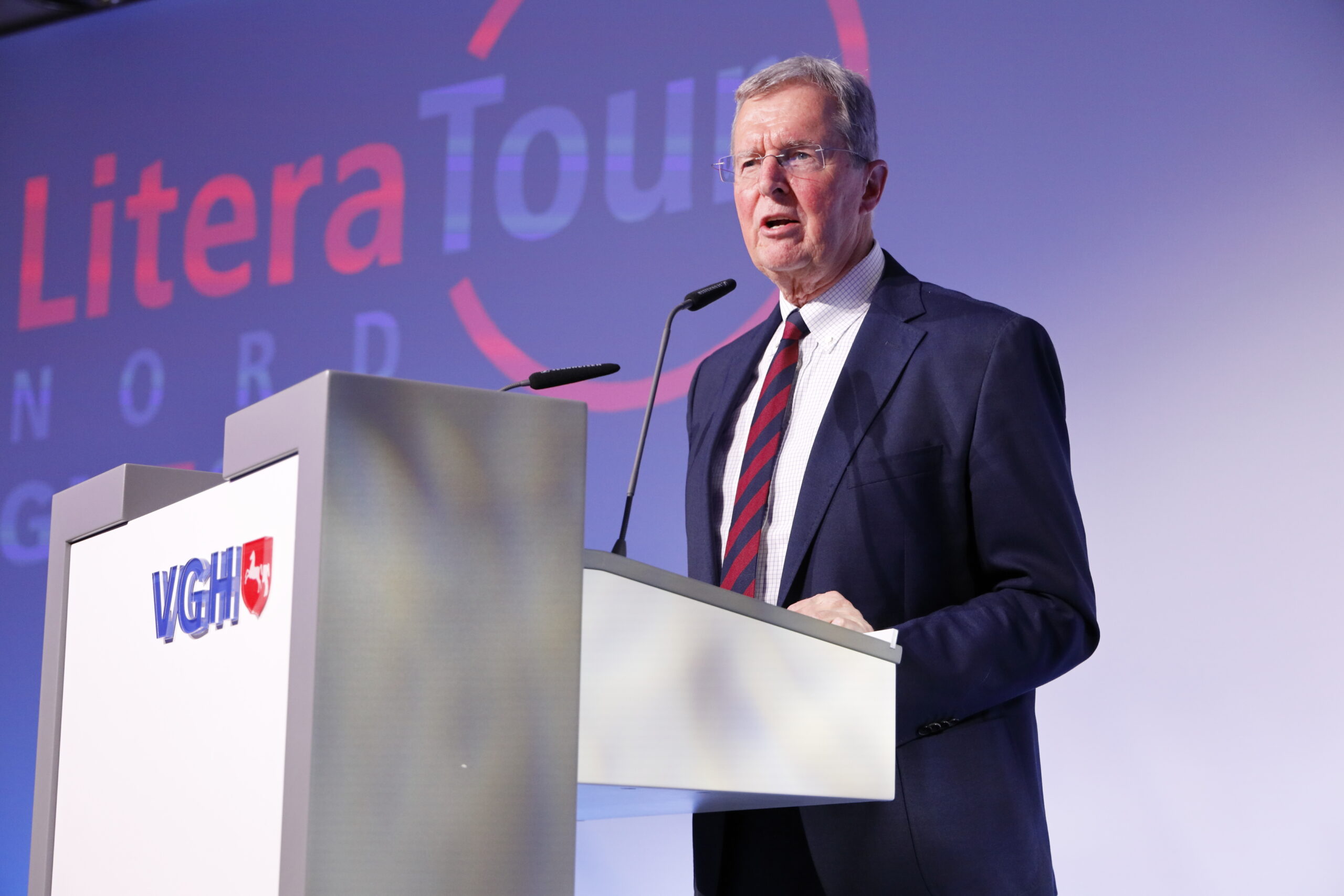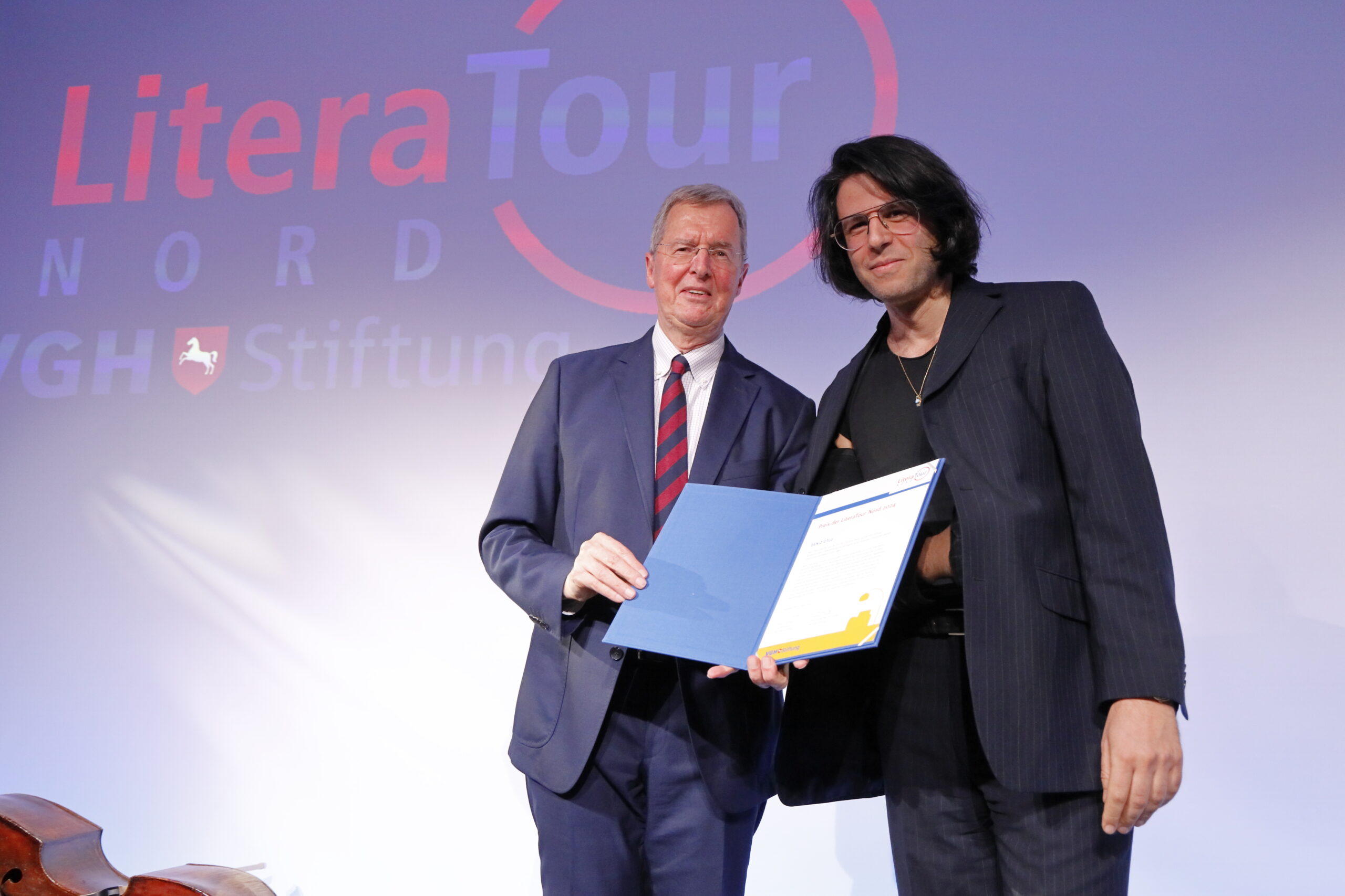Deniz Utlu ist der Preisträger der LiteraTour Nord 2023/2024. In einer Feierstunde am 11. April 2024 überreichte Friedrich v. Lenthe, Vorstandsvorsitzender der VGH Stiftung, den mit 15.000 Euro dotierten Preis der LiteraTour Nord an den in Hannover geborenen Schriftsteller. Nach einem Grußwort von Friedrich v. Lenthe begrüßte auch Kathrin Dittmer, Jurysprecherin und Leiterin des Literaturhauses Hannover, die über 300 Gäste. Deniz Utlu dankte für die Auszeichnung und las im Anschluss aus mehreren bisher unveröffentlichten Gedichten. In seinen musikalischen Intermezzi nahm Kontrabassist John Eckhart immer wieder Bezug auf Utlus Roman „Vaters Meer“.