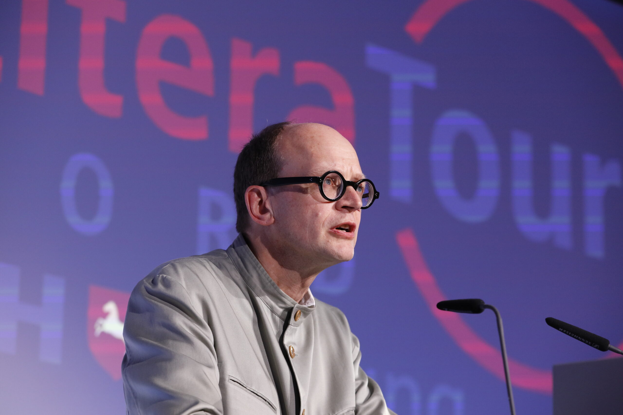 Literaturkritiker und FAZ-Journalist Andreas Platthaus in seiner Laudatio an Deniz Utlu