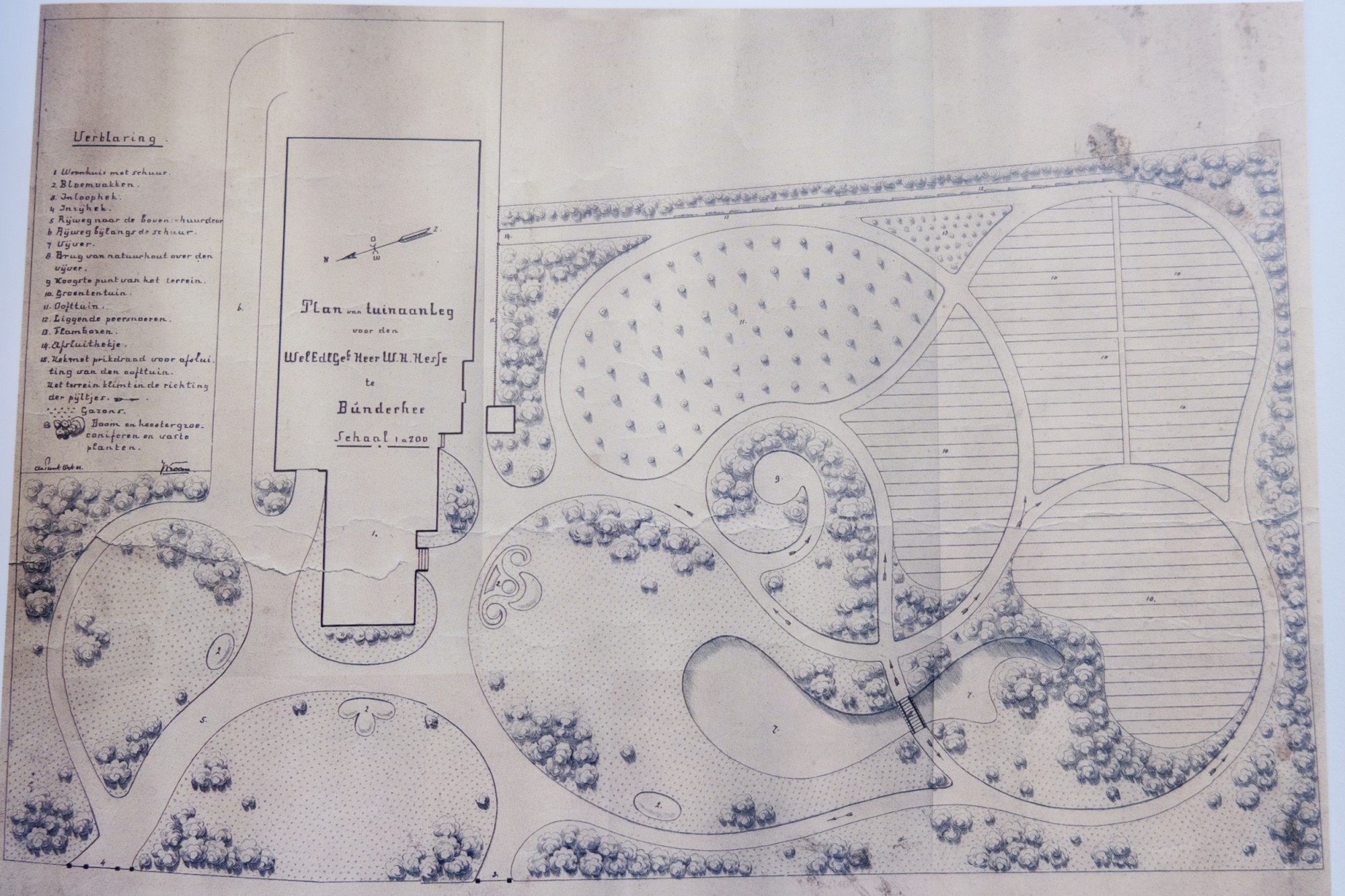 Die rheiderländer Großbauern richteten sich bei der Anlage ihrer Gärten nach der aktuellen Mode: Im 19. Jahrhundert waren die „Slingertuins“ besonders angesagt. Geprägt von geschlungenen Pfaden, luden die Gärten zum Lustwandeln ein. Zu einem echten „Slingertuin“ gehört auch ein künstlich angelegter Teich, in dem sich der Giebel des Gutshauses repräsentativ spiegelt. Weitere Stilmerkmale der Gartenart sind Solitärbäume, halbrunde Beete, weiße Brücken, Rasenflächen und ein etwas höherer Hügel.