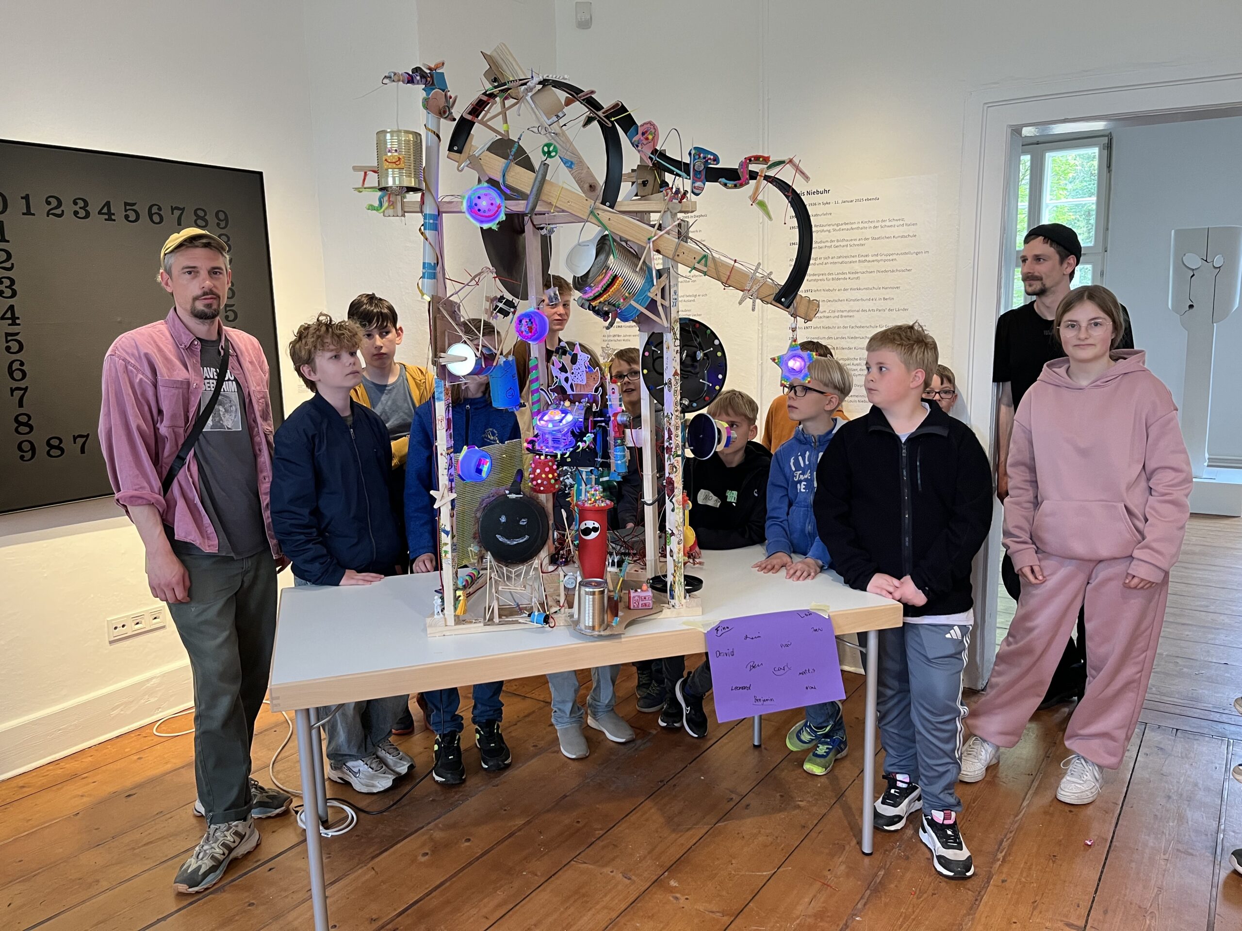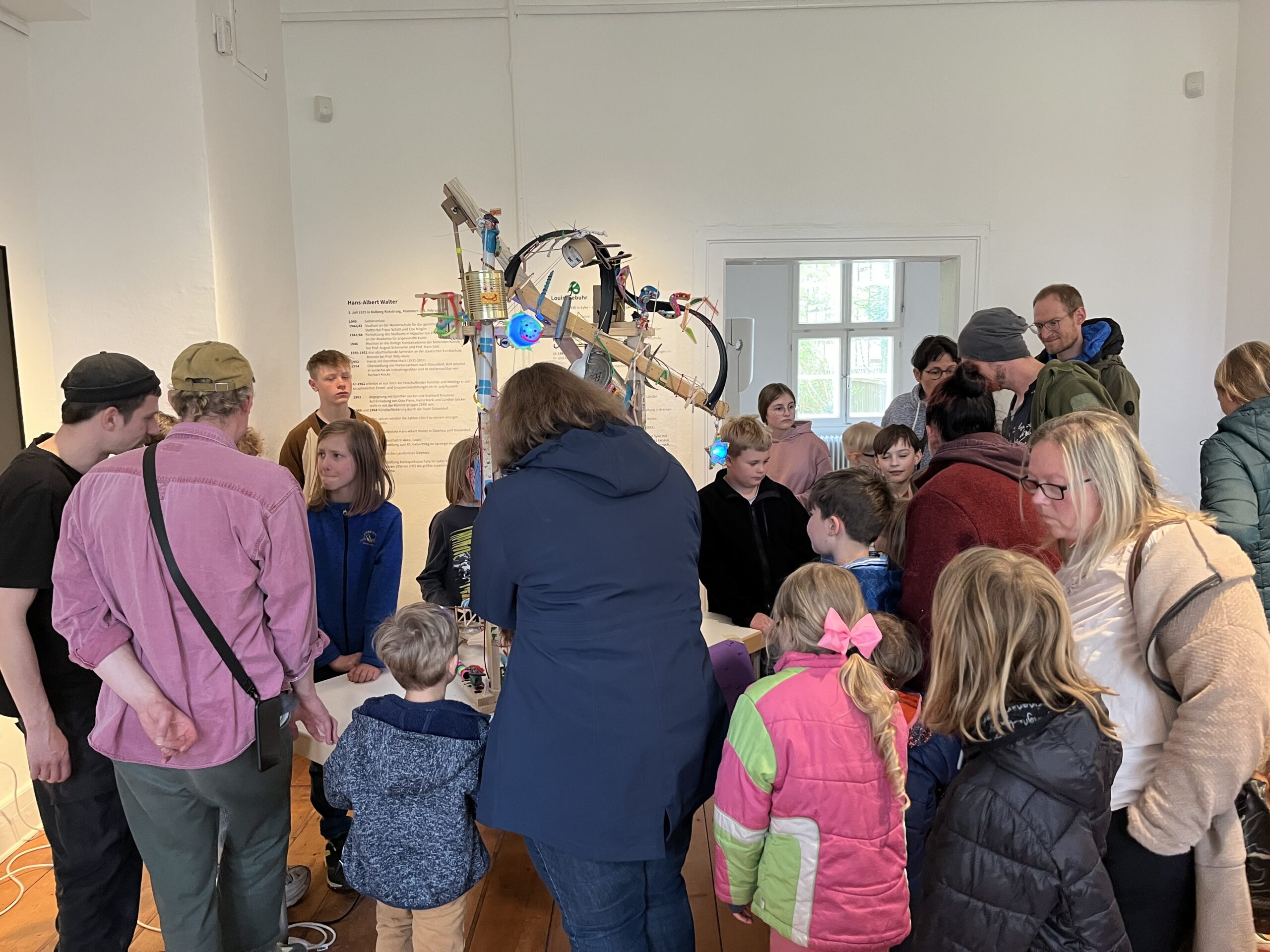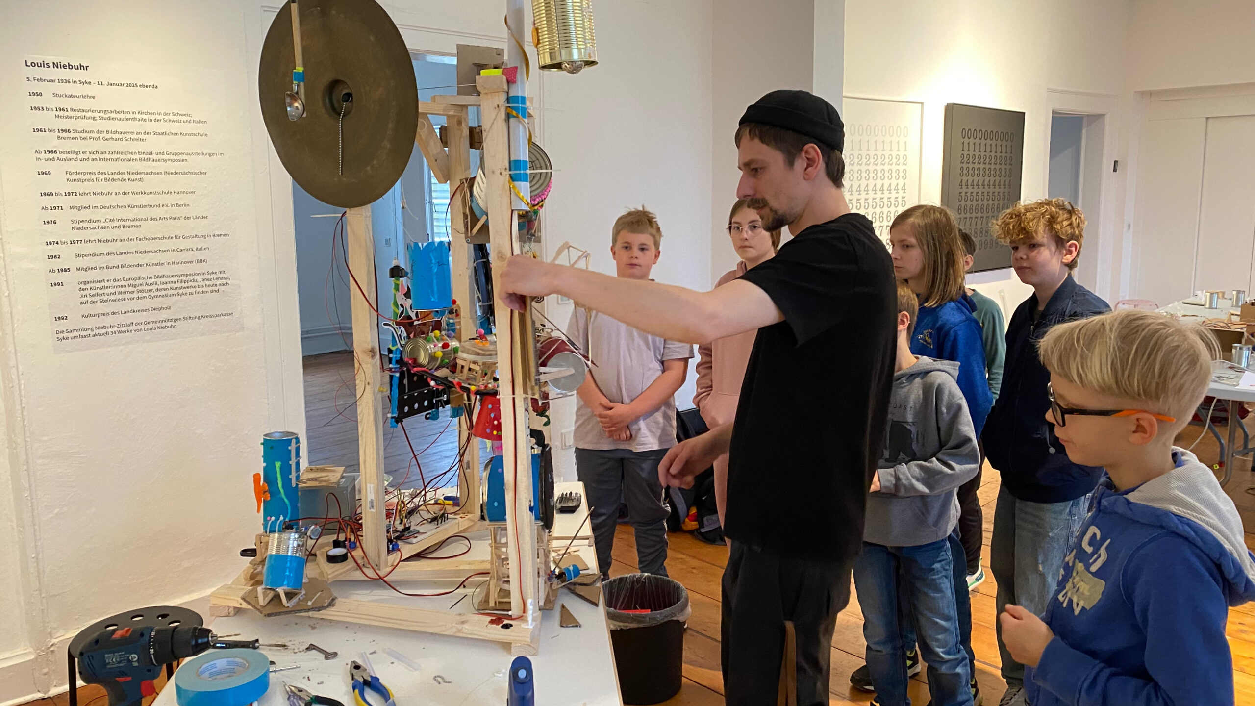 Während der Osterferien fand in Syke ein dreitägiger Kunstworkshop für zwölf Kinder im Alter von 9 bis 14 Jahren statt. Unter der Leitung der Künstler Thomas Keiser und Lukas Leck konnten sie eine Soundmaschine aus Alltagsgegenständen wie leeren Dosen, Holz- und Metallresten oder Gummischläuchen bauen. Das Objekt wurde mit Motoren, elektrischen Schaltungen und Mikrocontrollern ausgestattet und konnte somit eigenständige Bewegungen ausführen und unterschiedliche Geräusche erzeugen.